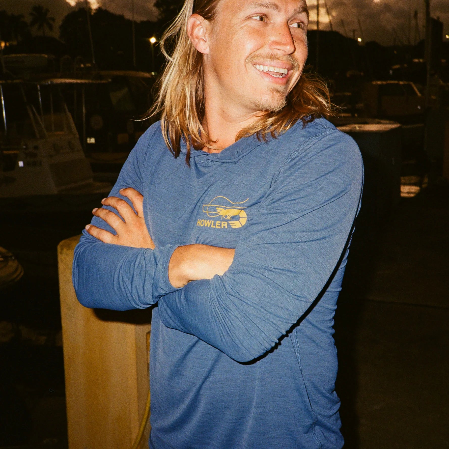 Here's the hooded version of our utilitarian HB Tech T. This is the ultimate stretchy throw on for times when you need a no frills hooded cover up that is up to the task. Perfect for hiking, fishing, beaching, yard work and just everyday slounging. It’s lightweight and rated UPF 50+.