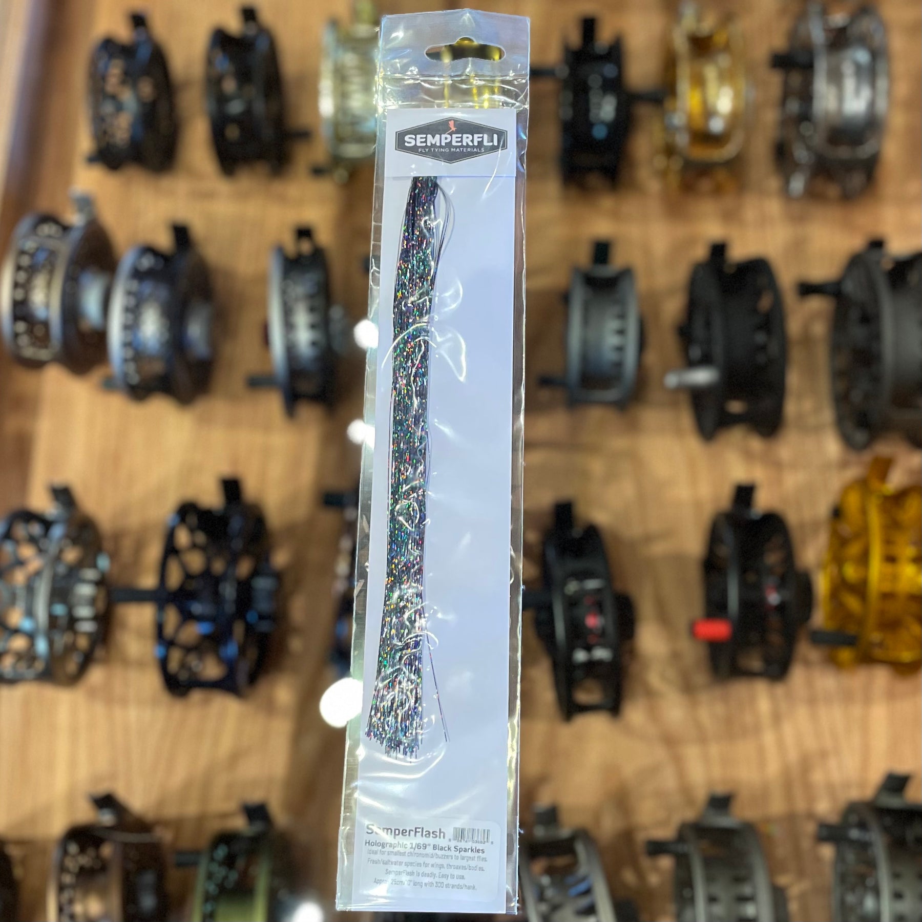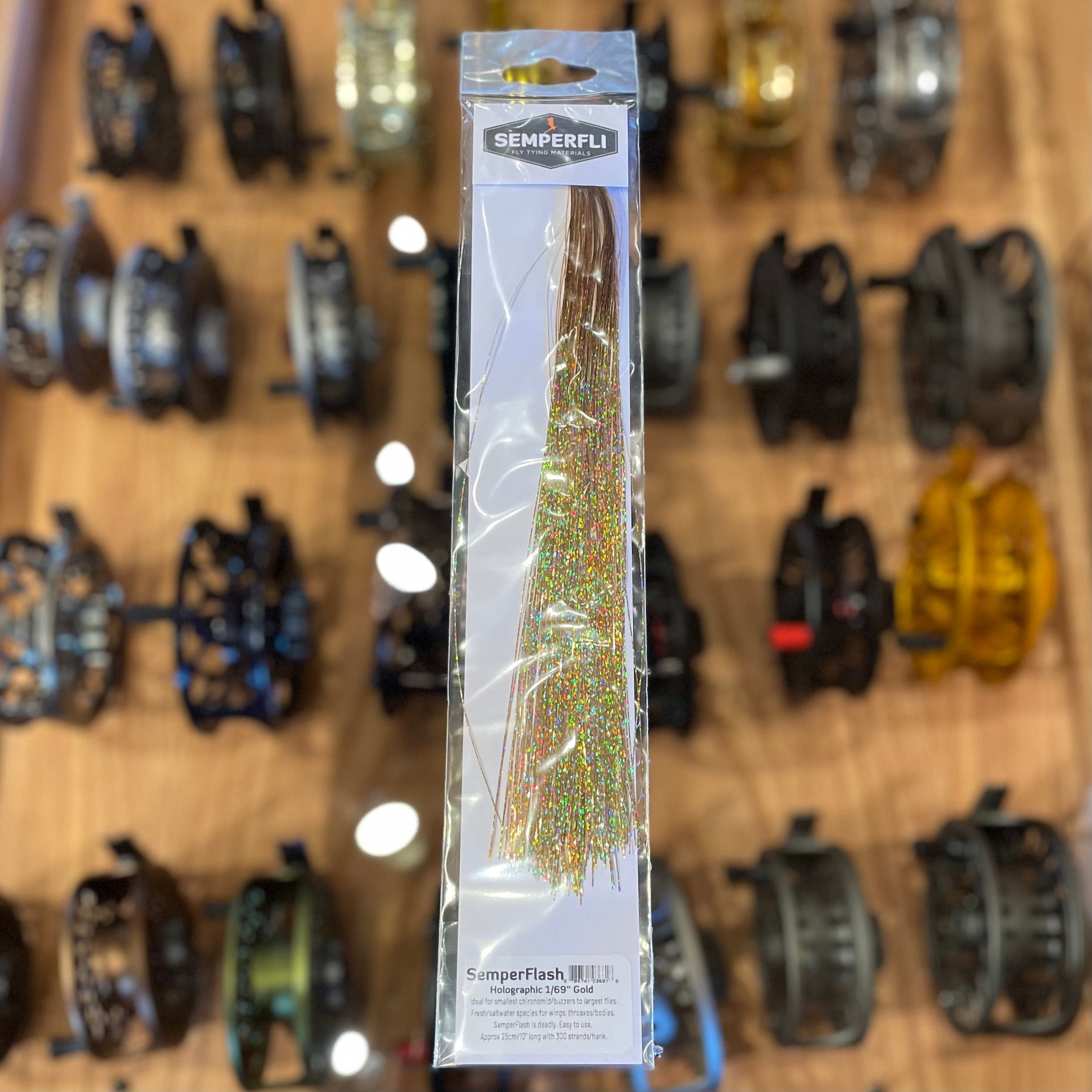 This ultra-thin 1/69 in (or 0.4 mm) holographic flash material is designed to deliver a multi-directional sparkle for superior baitfish and attractor fly patterns. Each pack provides 300 strands of 10-inch usable length, making it versatile enough to create wings and accents on everything from tiny buzzer patterns to large saltwater streamers.