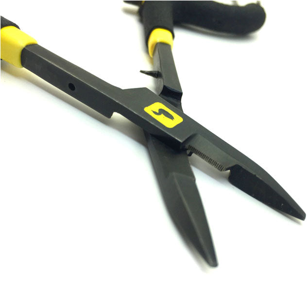 The ultimate hemostat, thoughtfully designed from the tips to the jaws to the handle. A carabiner handle means you can store anywhere and the tight angles and engineered shape accommodate all fly sizes, allow for easy hook removal, and can crimp even the heaviest of barbs. Oversized thumb and finger holes accommodate large or gloved hands, and the compact cutting surface easily clips light or heavy leader.